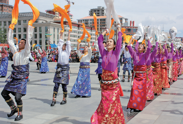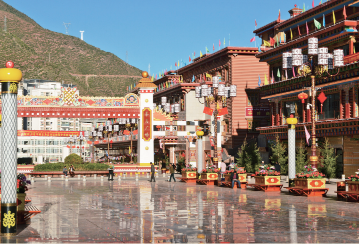 - 甘肃省合作市的市民都喜欢到香巴拉主题文化广场上走一圈,看着孩子嬉闹、老人健身,整个广场上到处洋溢着祥和、温馨的气氛。