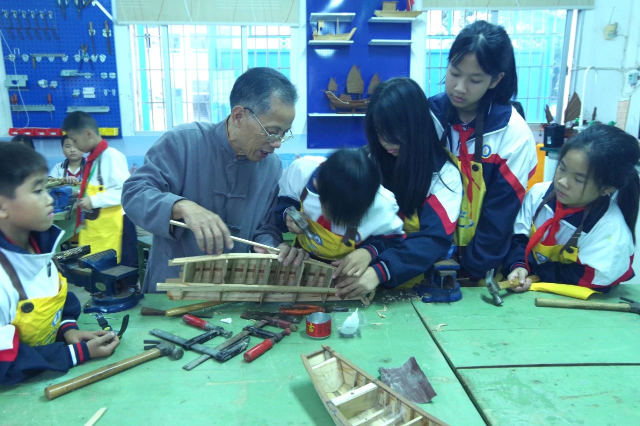 国家级非物质文化遗产传承人刘细秀走进校园,在言传身教中带领孩子们感受非遗魅力。陈玲汇 摄