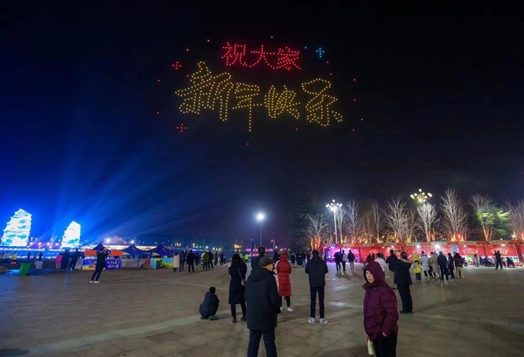 数字科技增添浓浓年味,大美漯河呈现无限生机。春节期间,“只有漯河”数千架无人机盘旋在河南省漯河市沙澧河风景区上空,排列出中国结、走马灯等造型,似繁星闪烁,宛如一幅锦绣画卷徐徐展开,赢得市民的啧啧称赞。“无人机灯光秀科技感十足,让传统文化展现新魅力,很好看,很震撼,为我们的城市增添了浓浓的年味!”和家人一起观看灯光秀的吴先生说,许多人的微信朋友圈被这场无人机表演刷屏。