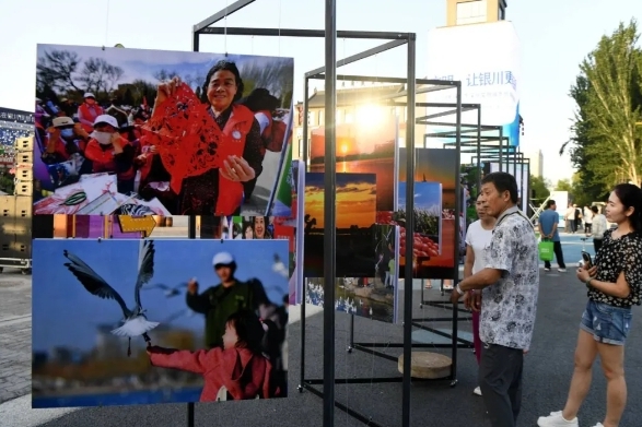 银川市深化文明城市创建系列主题活动首场活动“品质银川,100 个美好瞬间”主题摄影展区。