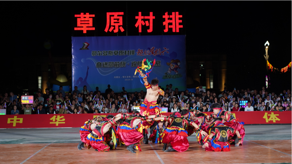 鄂尔多斯“草原村排”超级联赛年度总决赛暨鄂托克前旗全民健身排球挑战赛开幕现场文艺表演。