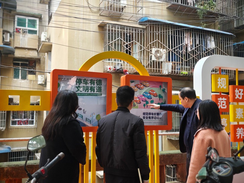 不远处的桂花园新村社区则针对老旧小区的实际情况,巧妙利用院坝打造 “童玩花园”,并将其升级为 “文明有范儿” 治理示范空间,通过文明宣传倡导栏、创意彩绘墙和特色座椅,让文明理念以一种润物无声的方式融入居民生活。