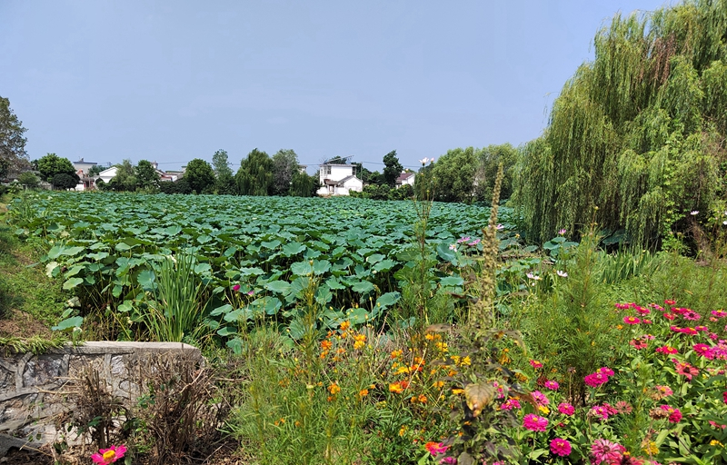 平坦干净的乡间小路纵横交错,淳朴整洁的民房农舍错落有致,绿树掩映的农家菜园清爽怡人……走进安徽省巢湖市烔[tóng]炀镇中李村菱角塘自然村,路边鲜花怒放,墙面文明标语生动醒目,一幅田园风光与现代文明相互交融的风景展现眼前。