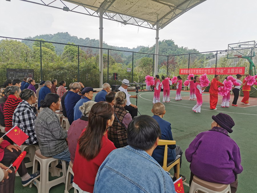 “创建文明村镇,不仅是村容村貌的改造和环境的整治,更是群众精神生活的提升。”桂花村党总支书记周磊介绍,该村还建立了志愿服务站,一方面党员志愿服务队定期开展走访慰问空巢老人、留守儿童等活动,关爱村里的困难群体,文艺志愿者也定期在活动广场组织文艺活动,丰富村民文化生活;另一方面,主动对接社区、卫生院、四川农业大学等,邀请相关人员来村里定期开展学生课后活动、技能培训、健康体检等志愿服务。