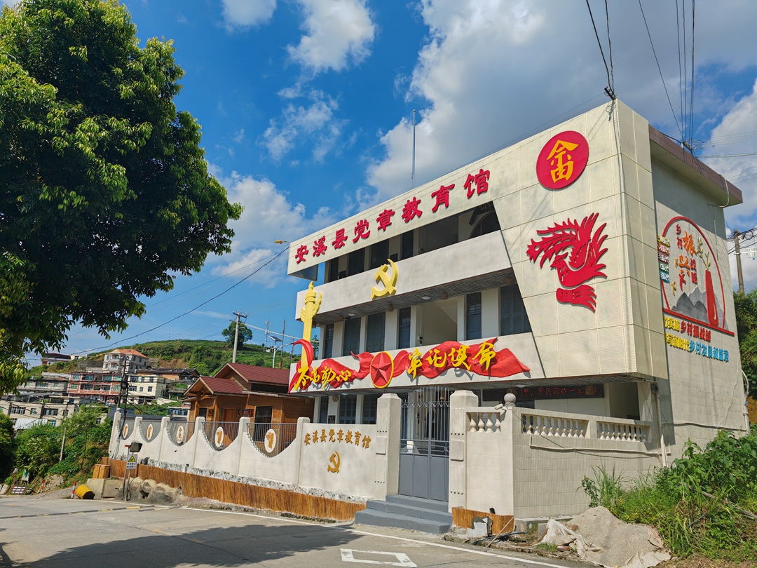进入特色畲族山门,沿着公路行走三五钟,只见一座独具浓厚畲族风情的三层楼房矗立在路边,这正是福建省首个以党章教育为主题的展馆。走进馆内,只见墙上图文并茂,生动形象说明了党章从党的一大到二十大每次修改、变化的历程。馆内还设有家风家训馆和畲族文化馆,用彩绘的形式刻画着关于畲族人民的服饰、工艺、舞蹈等元素,可以让人充分领略畲族家风家训的故事以及历史传承,体会和谐、内敛、儒雅的传统文化内涵。