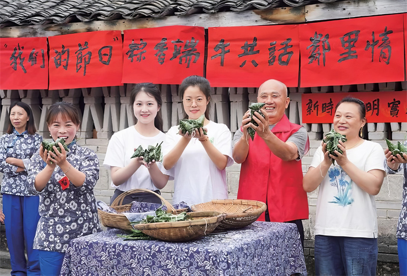 “长者食堂”志愿者在端午节深入村民家举行活动。古良驹 摄