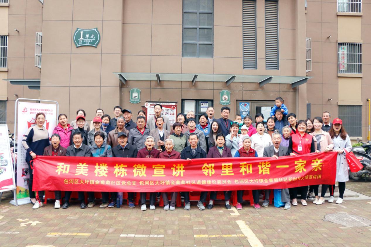 为扎实推进和美小区建设,社区党支部牵头成立“社区道德建设委员会”,牵头开展一系列文明实践活动,加快城乡文明融合进程。于是,一支由社区楼栋党小组组长、楼长、居民代表、辖区单位代表等组成的草根宣讲队伍“圩美实践宣讲团”开始活跃起来,开展各类文明主题的宣讲活动,在润物细无声中逐渐改变居民们的习惯。