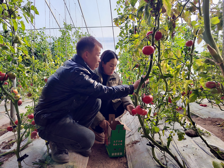 牛家坊村大棚种植户马博龙正在指导游客采摘西红柿。