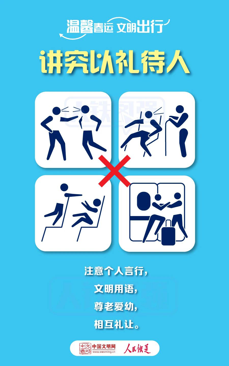 中国文明网、《人民铁道》报业有限公司共同发布《铁路旅客文明出行倡议》,我们倡议: