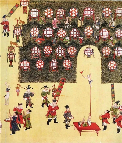 宋代,燃灯活动从正月十四到正月十八,节期长达五天,成为当时最盛大、最隆重的节日。辛弃疾有词赞道:“东风夜放花千树,更吹落、星如雨。”说的是元宵佳节花灯无数,烟花如雨。明代的元宵节自初八点灯,一直到正月十七的夜里才落灯,整整十天。唐伯虎有诗曰:“春到人间人似玉,灯烧月下月如银。”清朝时,民间的灯会仍然灯火璀璨。