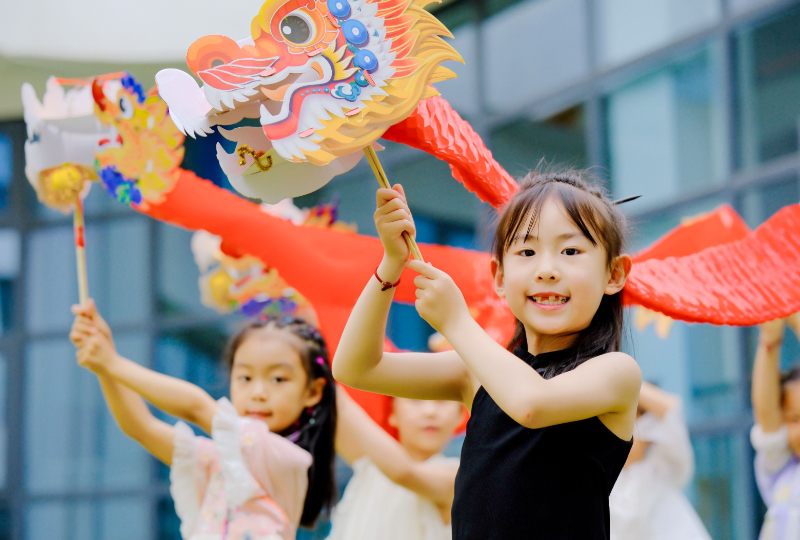 6月5日,内蒙古鄂尔多斯市康巴什区第十二幼儿园的孩子们在体验舞龙。端午临近,各地举行赛龙舟、包粽子、摘艾叶、做香囊等丰富多彩的活动,迎接传统佳节。新华社发 王正 摄