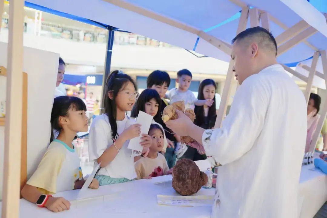 在深圳市“我们的节日·‘吉祥端午,美好童年’游园活动”现场,中医药互动摊位吸引了众多市民前来围观。