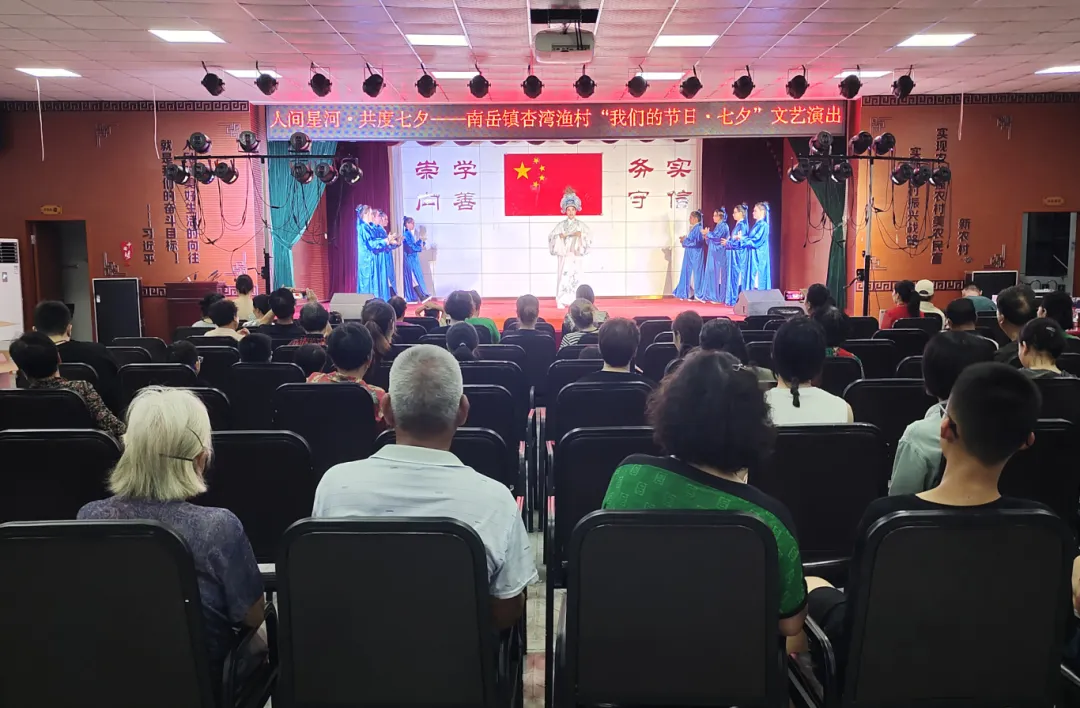 浙江省乐清市新时代文明实践中心联合南岳镇杏湾渔村新时代文明实践站、文化礼堂开展“我们的节日·七夕”——“人间星河·共度七夕”文艺演出活动,精彩的越剧经典折子戏《梁祝·楼台会》,让新老观众感受到优秀传统文化的魅力。