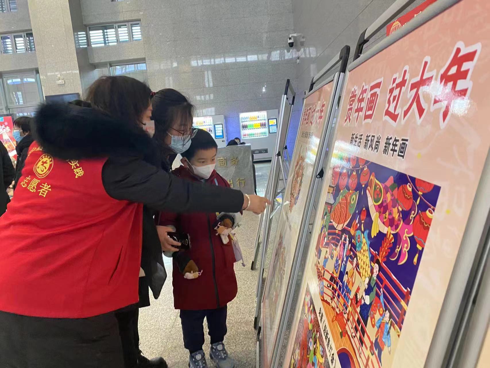 陕西省宝鸡市岐山县委文明办、岐山县新时代文明实践指导中心联合蔡家坡镇新时代文明实践所在岐山高铁站开展“赏年画 过大年”新年画作品展主题文明实践活动。在高铁站的大厅,一幅幅融合社会主义核心价值观、文明创建、移风易俗等内容创作的精美年画,展示了中华传统文化的丰富内涵和独特魅力,为广大群众送去喜庆年味和新春祝福。