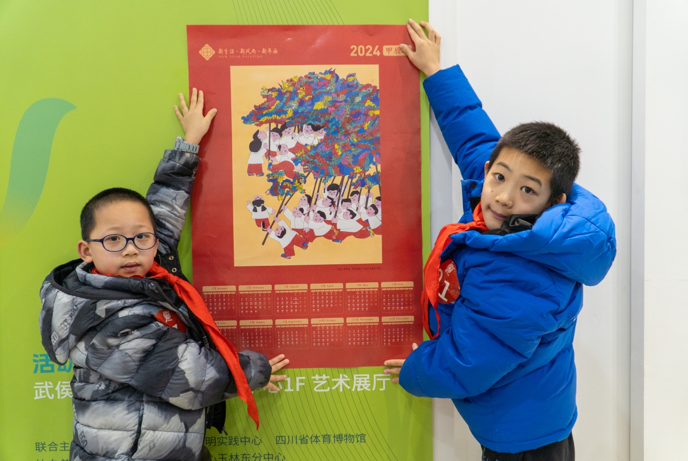 热热闹闹赏年画,红红火火过大年。“成都幸福年 春节暖冬行”文明实践志愿服务活动走进四川省成都市武侯区新时代文明实践中心。活动现场,四川省志愿服务小分队为市民群众送上年画,并带领孩子们贴年画、赏年画。色彩明丽、款式多样的年画,吸引了众多市民驻足欣赏,也为春节增添了浓郁的年味儿。
