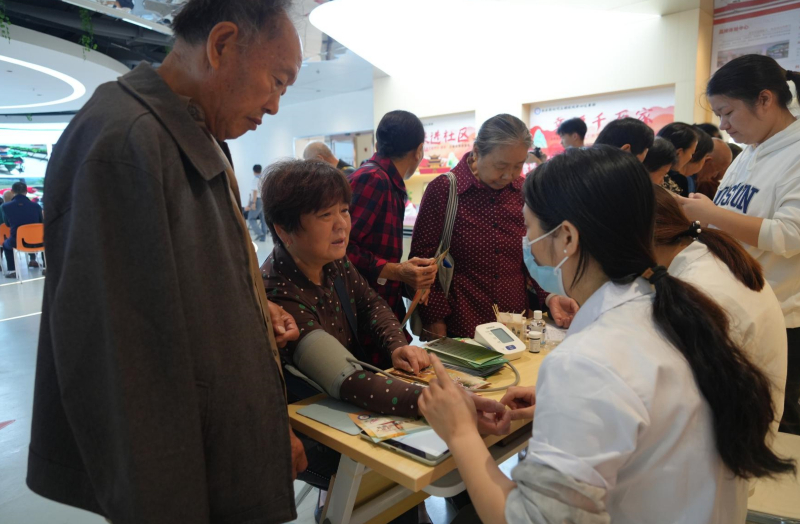 “您的血压偏高,要记得定期体检。”在义诊区,前来咨询的居民络绎不绝。大家有序排队,依次接受血压测量、血糖测量等检查。每个检查台前,医护人员都耐心细致地为居民答疑解惑,提供科学的健康建议。同时,医护人员还积极向居民普及常见疾病预防知识和健康生活方式,引导广大居民树立科学的健康观念。