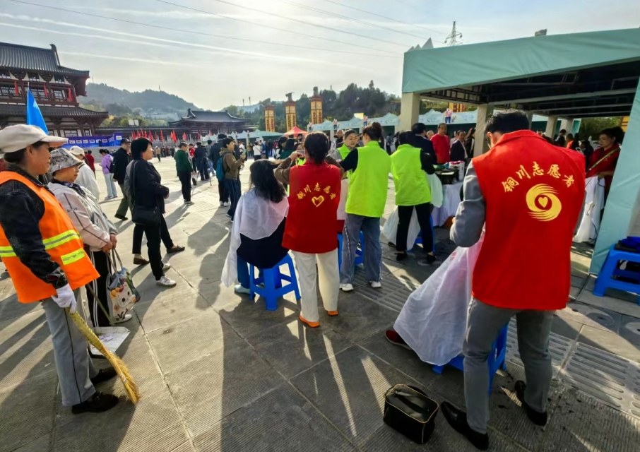 参加“铜行动 纳百川”文明实践集市的志愿者正在为广大群众服务。(陕西省委宣传部文明实践处供图)