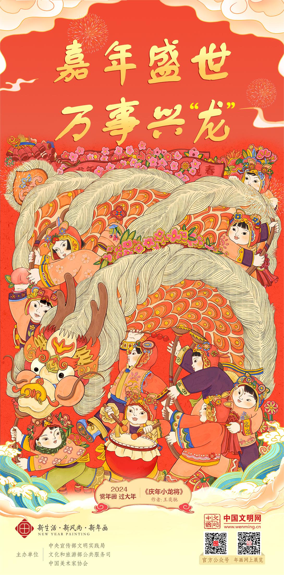 此次活动从2月2日持续至24日,分为《丰收幸福节》《创美新生活》《吉庆闹新春》三个篇章,从近五千件作品中评选出151件优秀作品进行展示,同时还展出历届优秀作品及龙年生肖年画作品60余件。