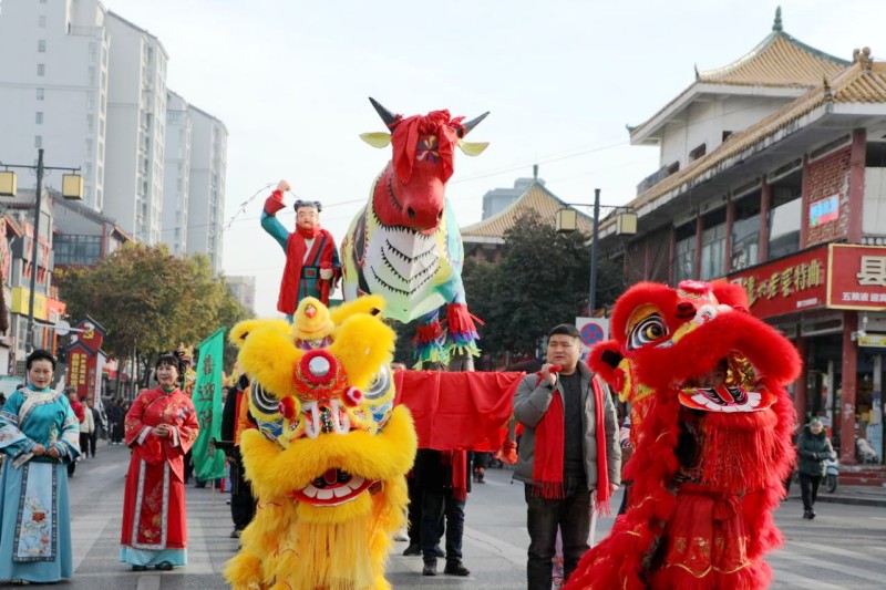 日前,南阳市内乡县举办“打春牛”、舞龙舞狮等民俗表演,吸引众多群众、游客前来观看,营造喜庆、欢乐的氛围,展现内乡的文化风貌、良好形象及发展成果。据了解,国家级非物质文化遗产“打春牛”这一习俗从周代开始并延续至清末的“鞭春牛”活动有着直接的联系,从单纯的土牛展示,到后来的“花装栏坐”、彩杖击打、谷麦抛撒,以至供奉于“堂中”,这一节日活动在不断完善和发展的过程中,逐渐形成了自己独特的文化内涵和表现形式。
