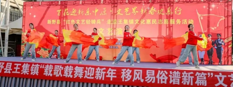 1月10日,新野县“百花迎春乐中原·文艺界新春欢乐行”移风易俗文明实践活动在王集镇举行。活动现场,书法家们为居民们写下一副副承载着美好祝愿的春联;文艺工作者们以精湛的技艺、饱满的热情,为王集镇提供了一场形式多样、内容丰富的文艺节目,这些节目既具有时代特色,又贴近群众生活,以群众喜闻乐见的方式推进移风易俗观念深入人心,共筑文明新风。