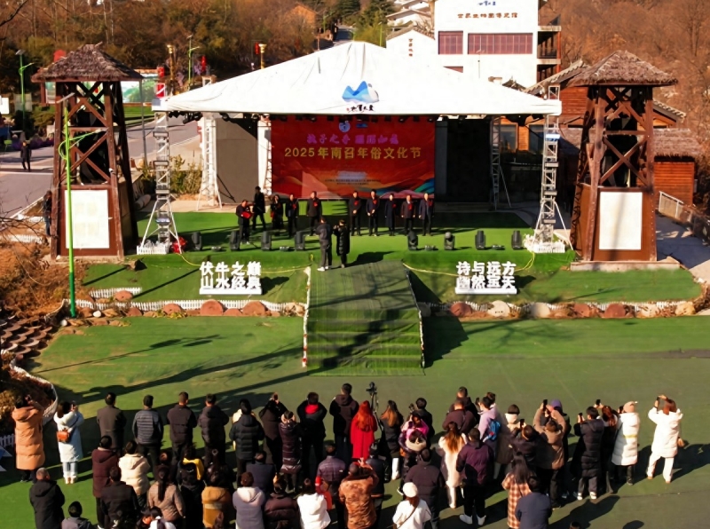 1月11日,“执子之手·昭昭如愿”2025年南召年俗文化欢乐季活动正式拉开帷幕。南召年俗文化欢乐季期间,大宝天曼度假区将邀请开封王婆、南阳李小婉团队在该景区开展多场文艺演出活动。除冬季高山滑雪外,各地游客还可以在这里参与民俗演艺、国风浪潮等互动项目,在感受浓浓年味儿的同时,体验别具一格的文化盛宴。此外,南召还组织了“南召之春”首届年俗文化艺术节,邀请本土特色民俗演艺团队演出曲艺、杂技、民间绝活、非物质文化遗产项目等;“香自南召来”文化类活动,分别由县摄影家协会、书法家协会、作家协会围绕主题组织创作摄影大赛、春联大赛、征文比赛等;“我有花一朵”南召农特优产品联展,设置品牌快闪店,集中展示当地农特产品、品牌产品等,进一步丰富群众节日文化生活,吸引各地游客到南召体验多姿多彩的年俗文化。