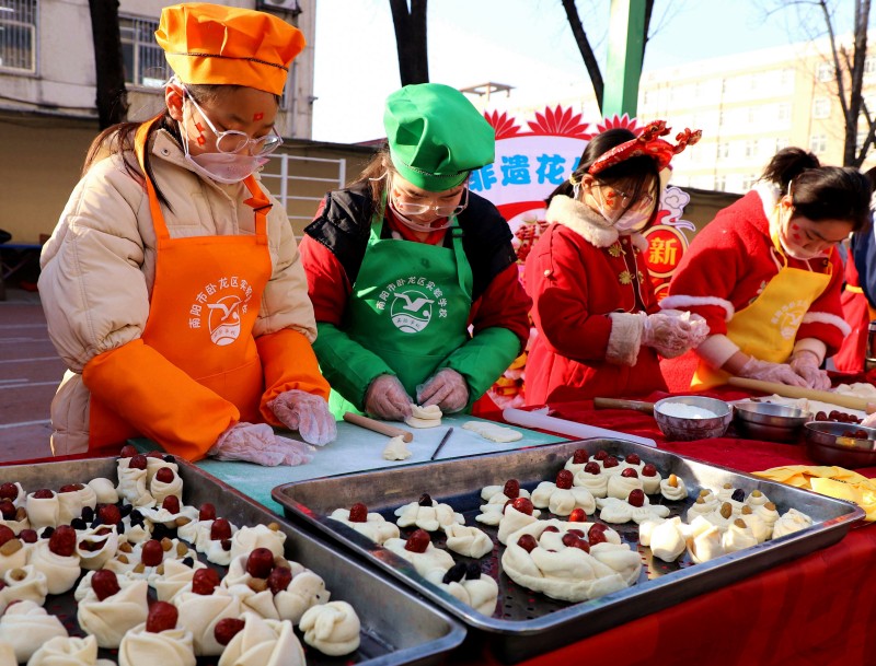 1月13日,南阳市卧龙区实验学校举办“迎新春 赏民俗 趣玩非遗”游园会。活动现场热闹非凡,身着汉服的孩子们同老师一起体验传统文化的独特魅力。游园会上,做糖葫芦、猜灯谜、做汤圆、写春联、做花饽饽、剪纸等传统民俗活动一应俱全。同学们在亲身体验中,领略民俗非遗的独特魅力,深刻感悟传统文化的博大精深。