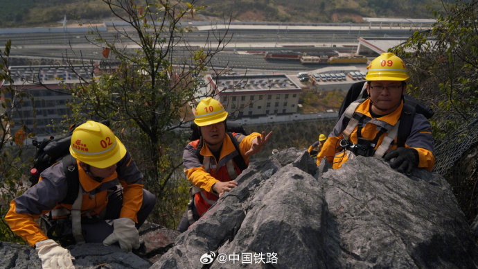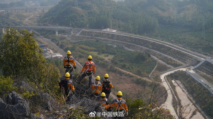 春运期间,中国铁路南宁局集团有限公司柳州工务段金城江路桥危石工区的10名桥隧工每天都要翻山越岭,对辖区黔桂铁路沿线山体的危岩落石情况进行排查,及时整治隐患,护航春运列车运行安全。