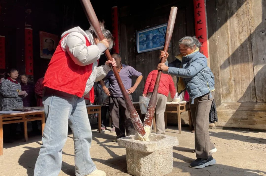 桂林市兴安县白石乡组织开展“我在新时代文明实践中心过春节”主题活动,将写春联、打糍粑等活动“搬进”新时代文明实践站所,志愿者们把形式多样的“年货”送到群众身边,让大家在新时代文明实践站所过一个文化年、特色年、欢乐年。