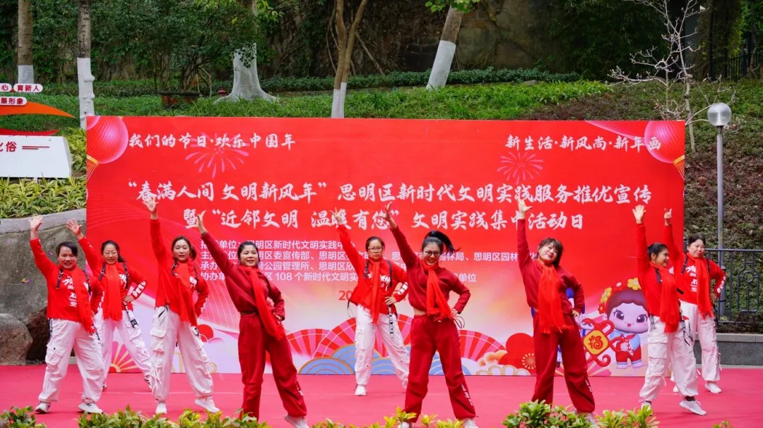 福建省厦门市思明区新时代文明实践中心开展“春满人间 文明新风年”主题活动。活动向市民朋友们呈现了丰富多样的文艺汇演,联动思明区辖内文明实践所、站设立文明实践摊位,为民众奉上新年春联、送福、非遗漆扇、红包拓印、暖心便民服务,展现文明新风貌。