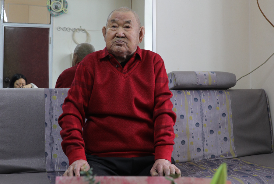 正值北方小年,88岁的赵永录穿戴一新,老伴儿给他换上的喜庆的红色毛衫,坐在沙发上安静地看着电视。“赵老,过年好啊,给您拜个早年!”老人一言未发,注意力被面前的电视节目吸引。“前几年你们来那次,他还能唠会儿,这两年不行啦。”一旁的老伴儿向慰问组解释道,“前几天亲戚来看他,隔天再来就不认人了。”