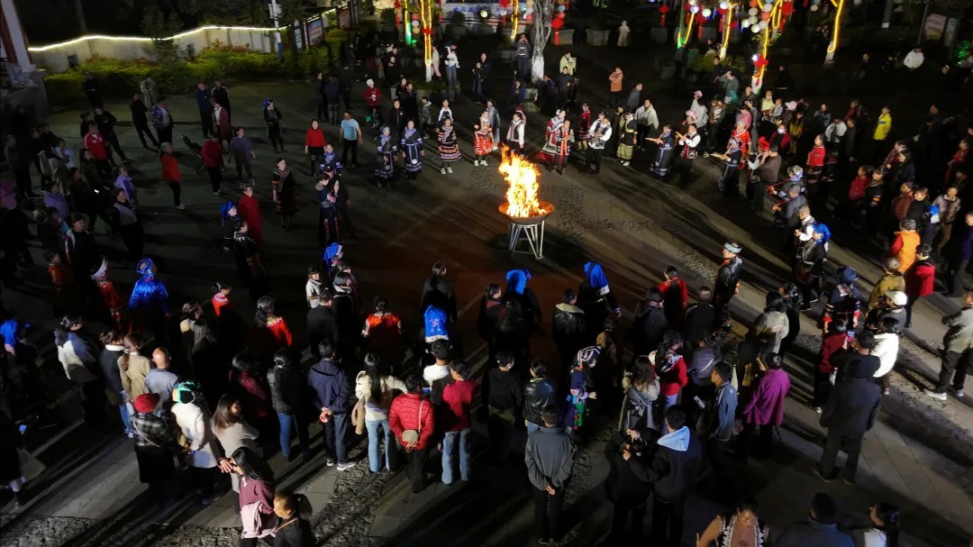 在普洱古镇,丰富多样的文明实践活动同步开展,书法爱好者以笔为媒,饱蘸深情,精心书写并送上承载着“祝福”“平安”“健康”的墨宝。当社会主义核心价值观、传统文化以及移风易俗理念巧妙融入谜面时,群众穿梭于灯谜中,答得不亦乐乎。此外,灯笼制作、糖画、烤茶、拓印、染红蛋、舂粑粑等体验环节吸引了不少群众驻足。现场,各族群众身着盛装,手拉手围着篝火跳舞,欢声笑语贺佳节,描绘出中华民族一家亲的美好画面,营造欢乐祥和的节日氛围。