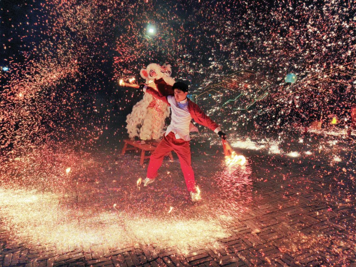 春节期间,佛山上演震撼人心的打铁花非遗表演,为游客和市民带来视觉与文化的双重享受。图片来源:佛山市新闻传媒中心