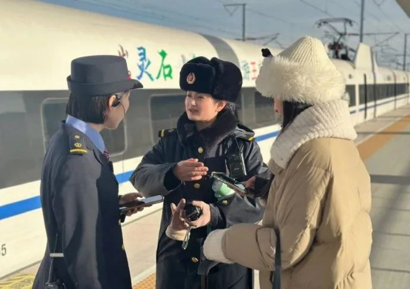 车站工作人员为旅客提供咨询引导和帮扶服务。
