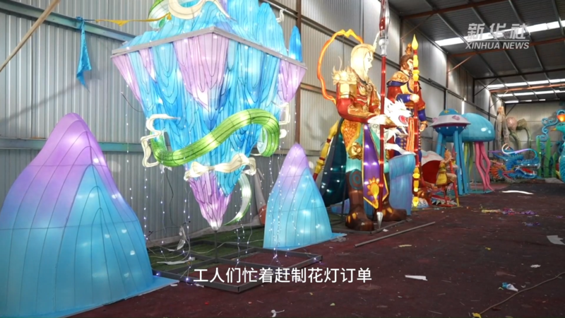 元宵佳节到来,在山东省潍坊市寒亭区东杨家埠村一家花灯企业的生产车间内,工人们忙着赶制花灯订单,蛇元素花灯成为各地为元宵节增色的抢手货。