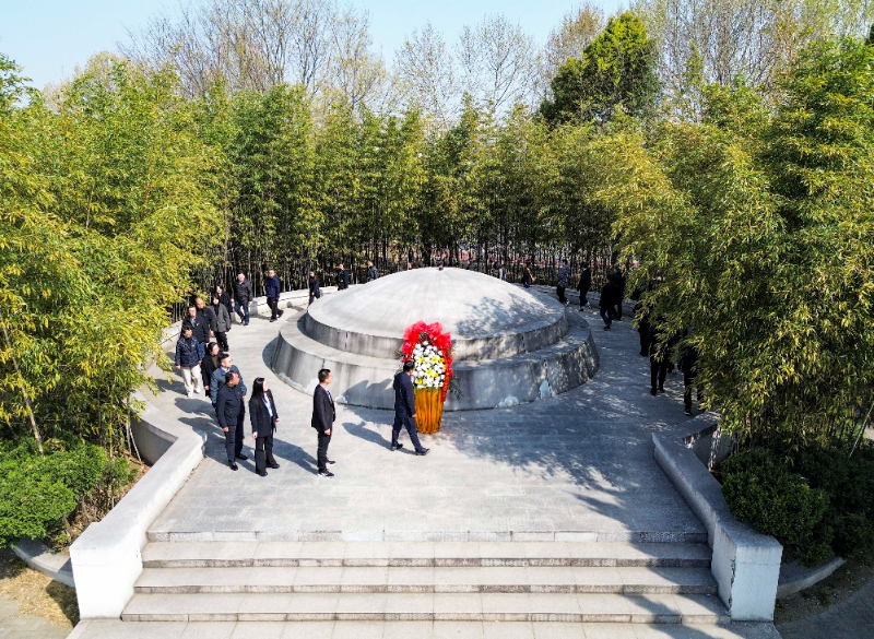 4月2日,人们在江苏省泰兴市中安轮遇难烈士墓前祭扫(无人机照片)。新华社发(顾继红摄)