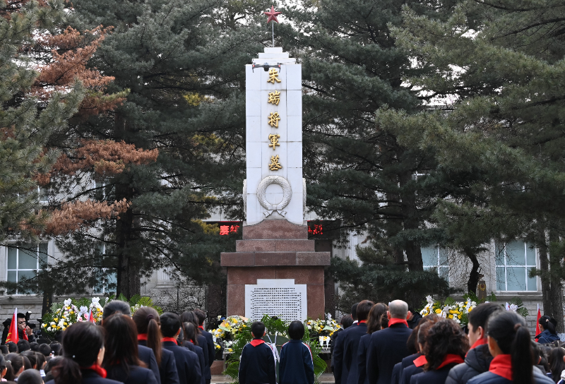 4月2日,老师和学生在黑龙江哈尔滨烈士陵园缅怀革命先烈。新华社发(原勇摄)