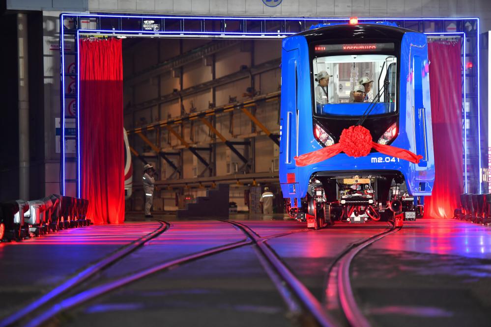中车株机公司工作人员在中国中车出口墨西哥城轻轨列车首列车内进行巡检(2023年9月9日摄)。新华社记者 陈泽国 摄