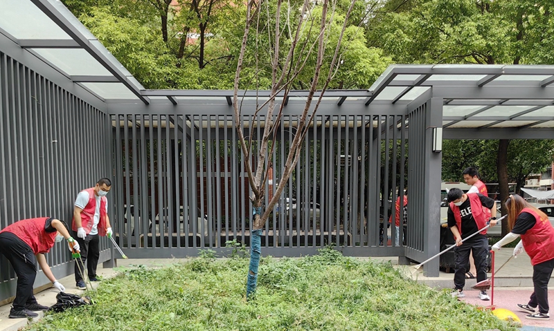 志愿者清洁家园。图片来源:武汉市硚口区委文明办