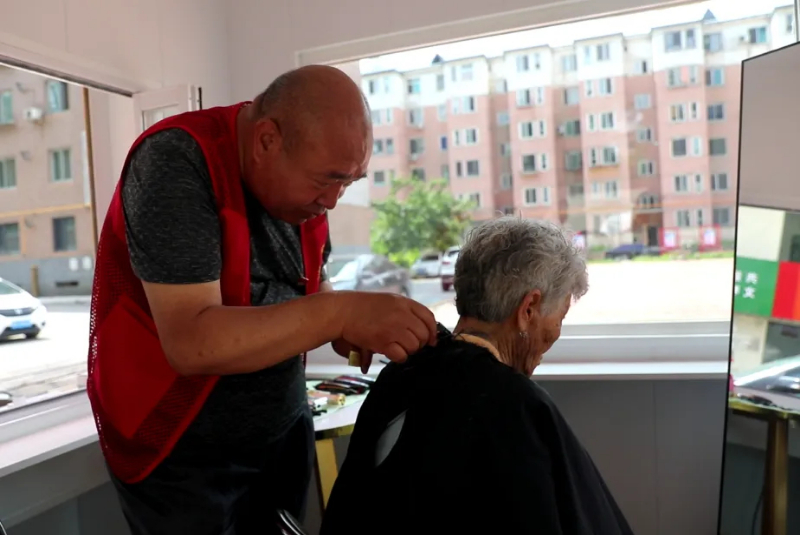 志愿者为居民免费理发。