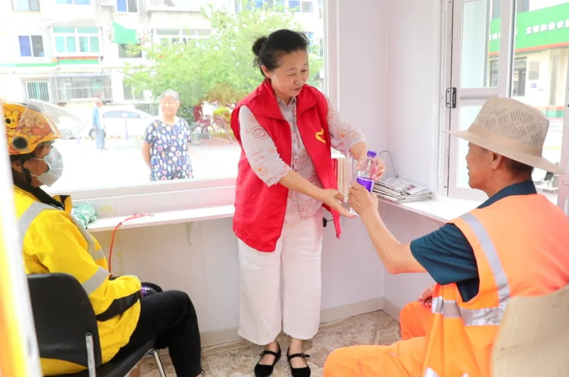 惠民社区新时代文明实践点旨在打造爱心休息室、志愿服务站、党建学习区多功能文明实践场所,免费对外开放,为环卫工人、快递员、外卖小哥、出租车司机提供休息服务。除了原有的空调等基础设施,还增添了手机充电器、矿泉水、急救包、老花镜、血压仪、自行车打气筒、针线以及雨伞等暖心用品。此外,还提供书籍以及党报党刊,让居民随时随地学习党的政策理论。