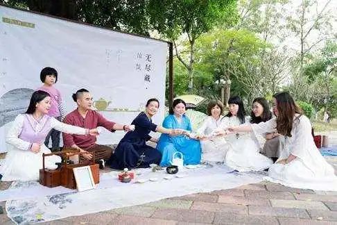“无尽藏”惊蛰茶席,茶艺师们和市民举杯