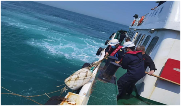 “0743”在巡航时打捞海面塑料垃圾 图片来源:舟山文明网