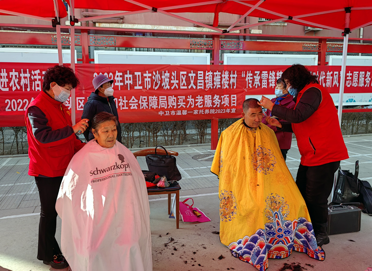 2023年3月2日上午,中卫市沙坡头区在文昌镇雍楼村开展学雷锋义诊义剪志愿服务活动。