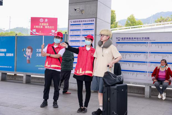 据介绍,泉州市委文明办统筹谋划,指导泉州交发集团在火车站交通枢纽建设质量高、形象佳、服务广的文明实践示范基地,在火车站交通枢纽,泉州交发集团新时代文明实践基地的志愿者们以泉州陆上交通窗口为阵地,身体力行诠释“奉献、友爱、互助、进步”的精神内核,迎接着八方旅客每一次的出发与到达。