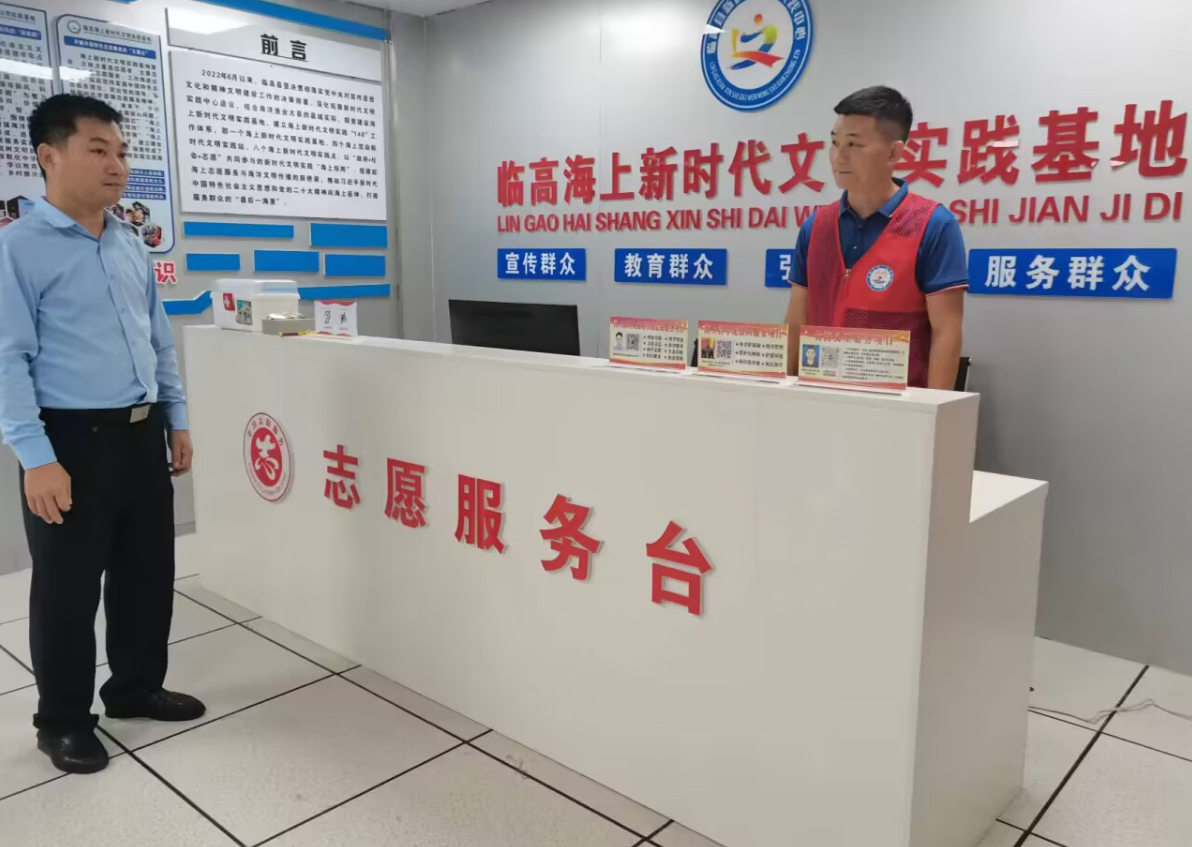 2023年国庆节前夕,临高海上新时代文明实践基地在新盈镇中心渔港正式揭牌,这标志着临高县新时代文明实践中心建设向海上延伸。