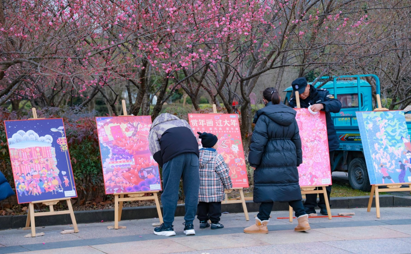 为营造祥和喜庆的节日氛围,由浙江省桐乡市文明办、桐乡市文化和广电旅游体育局主办,桐乡市文化馆承办的“赏年画 过大年”作品展示活动在桐乡市文化广场拉开序幕。一幅幅融入中国元素的精美年画,吸引了众多群众驻足欣赏,文化志愿者们还为市民送上寓意吉祥喜庆的龙年贴,市民群众纷纷点赞。