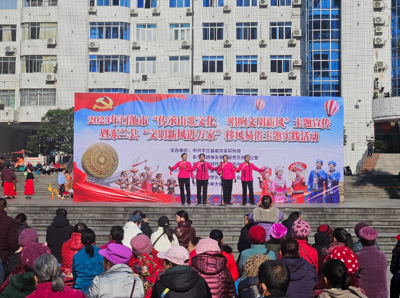 2023年12月21日,东兰县开展“传承山歌文化 唱响文明新风”主题宣传暨“文明新风进万家”移风易俗主题实践活动。