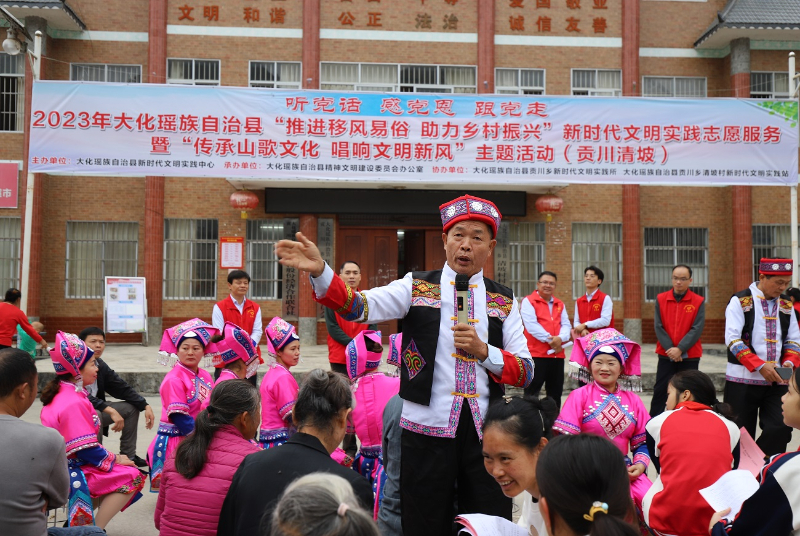2023年12月15日,大化新时代文明实践中心组织在贡川乡清坡村开展“推进移风易俗 助力乡村振兴”新时代文明实践志愿服务暨“传承山歌文化 唱响文明新风”主题活动。