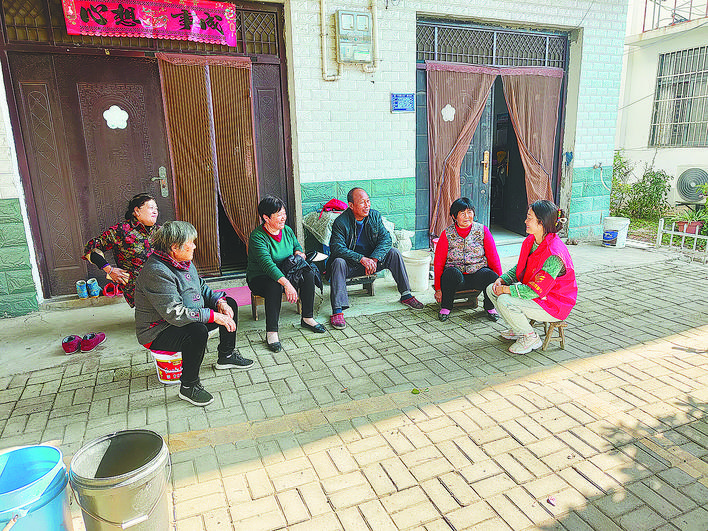 “板凳会”上宣讲员在给群众宣讲各项政策。
