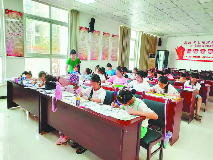 “‘七彩课堂’开设有英语,国学,绘画,硬笔书法和暑期作业辅导等,还结合清明节、端午节、中秋节等传统节日,为社区的孩子们准备丰富多彩的活动。不仅能丰富他们的日常和假期生活,也能让在外务工的家长安心。”陶西社区党总支书记介绍说,“七彩课堂”从2015年开始,到现在已经是第8年了,主要是为了精准化服务社区居民,也给需要帮助的群众带来便利。